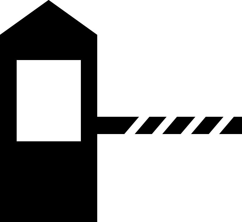 The schematic picture is needed to show the specific conditions for access to a certain territory including secure facility, guarded base or warehouse. At the same time, it can have a meaning of the approaching railroad crossing. Such a checkpoint may require an entry fee.